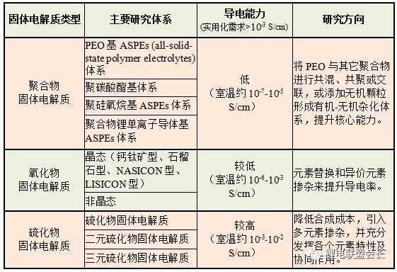 表:三類固體電解質主要體系和性能